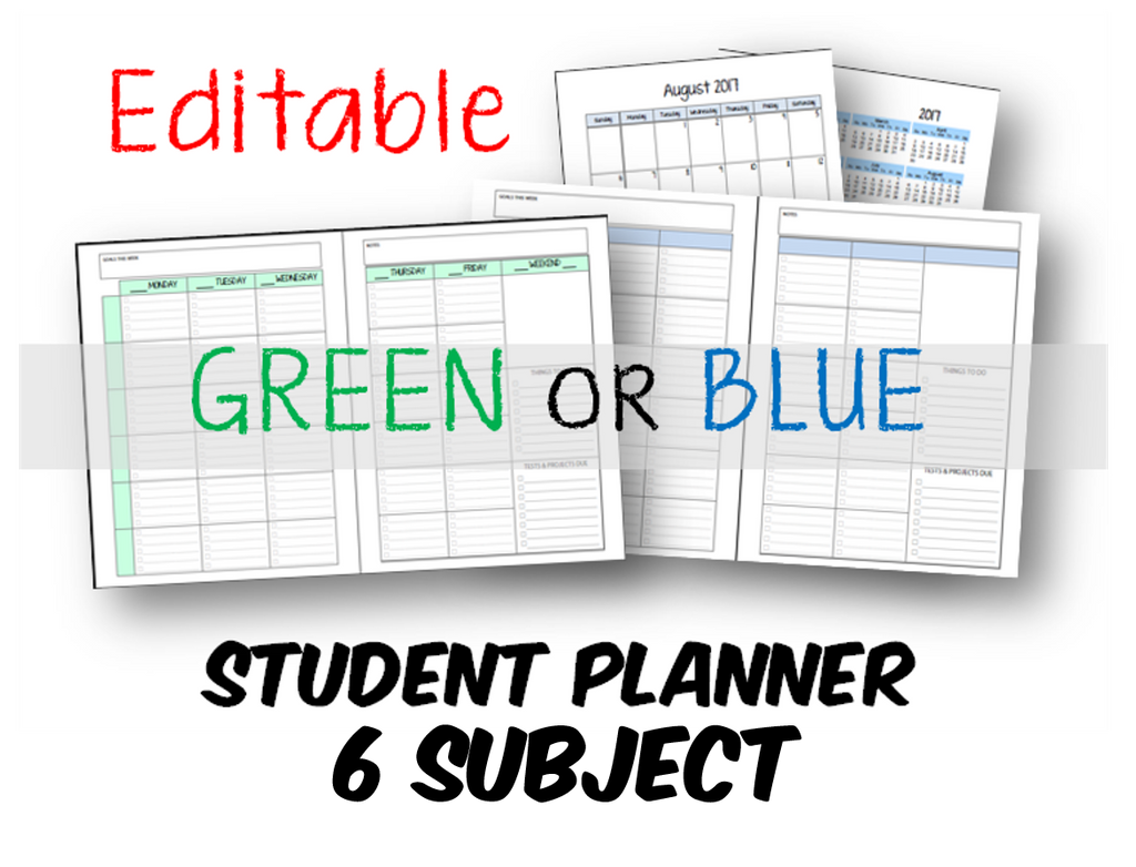 Source : www.vertex42.com2023 2025 Student Planner 6 Subject Green or Blue EDITABLE